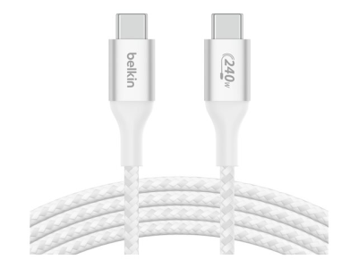 Belkin BoostCharge - USB-kaapeli - 24 pin USB-C (uros) to 24 pin USB-C (uros) - USB 2.0 - 1 m - virransyötön tuki jopa 240 W:n tehoon asti - valkoinen