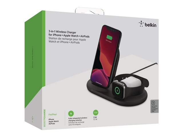 Belkin BoostCharge - Langaton latausalusta - 7.5 watti(a) - musta malleihin Apple AirPods; AirPods Pro; iPhone 11, 12, 7, 8, SE, X, XR, XS, XS Max; Watch WIZ001VFBK