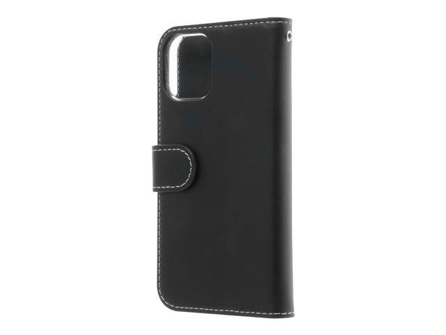 Insmat Exclusive Flip Case - Läppäkansi matkapuhelimelle - aito nahka, paperi, pahvi, polykarbonaatti, alumiinifolio - musta malleihin Apple iPhone 12 mini 650-2878